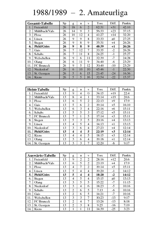 SAISON 1988/1989 - 2. AMATEURLIGA
