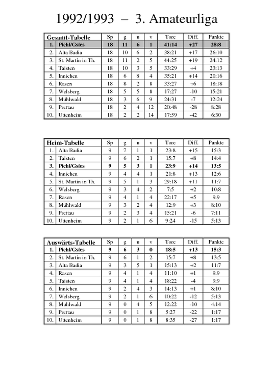 SAISON 1992/1993 - 3. AMATEURLIGA