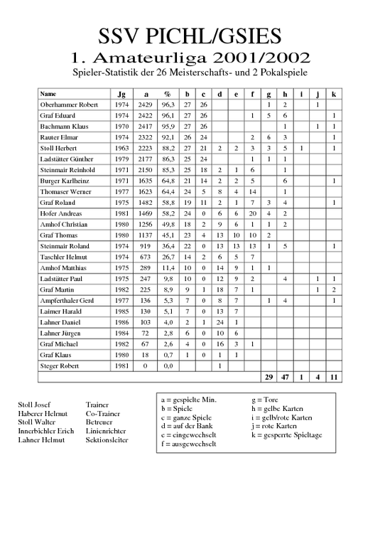 SAISON 2001/2002 - 1. AMATEURLIGA